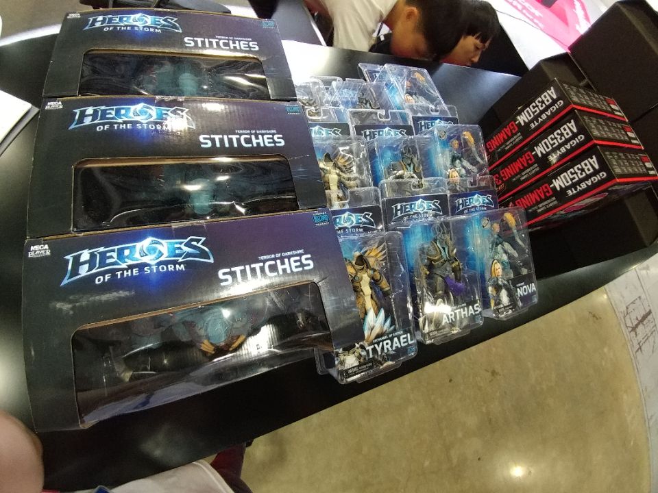 저희 부스에서 진행하는 이벤트 상품을 블리자드가 협찬한다고 피규어와 게이밍 기어를 조금 늦은 날짜인 금요일 밤에 보내줬습니다. 그래도 상품을 안내데스크에 전시해놓으니까 부스 깐지도 좀 더 났고 저도 가질 수 없는 저 못생긴 누더기가 탐이 났었네요.