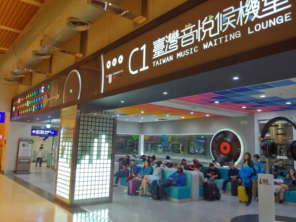 먼저 타오위안 공항 라운지 C1은 음악 컨셉. 자세히 보면 헤드셋이나 볼륨을 표현한 라이트, LP판 등 아기자기하게 즐길 수 있는 요소가 많아요.