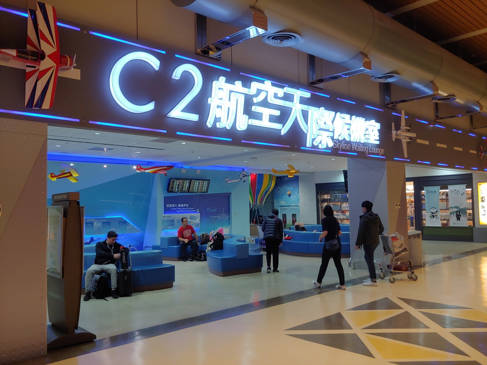타오위안 공항 라운지 C2는 스카이라인 컨셉. 프로펠러 비행기나 열기구가 눈에 보이는데 공항에서 보는 이 컨셉은 크게 눈에 띄는 것 같지는 않고...