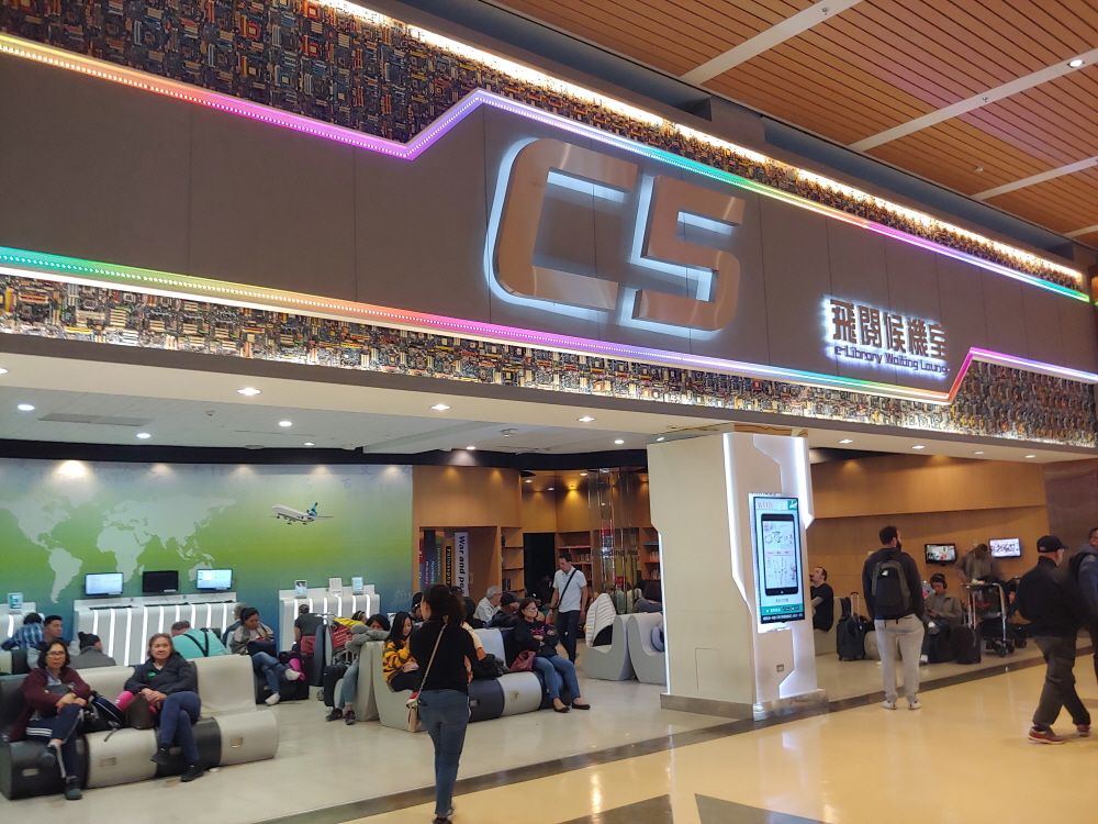 타오위안 공항 라운지 C5는 그냥 보면 잘 모르겠는데 e-라이브러리 컨셉. C5 간판쪽을 보면 전자기기에 들어가는 판이 쫙 깔려있어요. 라디오 조립 배울 때 용어를 알았었는데 기억이 ㅠㅠ