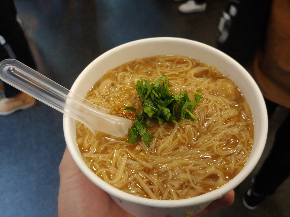 대만의 유명한 곱창국수 비주얼은 이렇습니다. 플라스틱 1회용 숟가락으로 퍼먹는 형태이고, 따로 앉을 자리가 있는게 아니어서 주위에도 많은 사람들이 서서 먹고 있는 모습을 볼 수 있어요. 여기에 넣는 소스는 3가지인가 있었던 것 같은데 저는 본연의 맛을 즐기길 원해서 약간만 넣었던 것 같기도 하고...아예 안 넣었던 것 같기도 하고...?