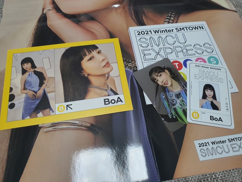 그리고 구성품으로 받은 엽서, 포토카드, 패스카드입니다. 이 중 포토카드는 2종 중 랜덤 1종인데 제가 받은 사진은 보아 인스타에 새해 인사와 함께 올라온 사진이었어요.