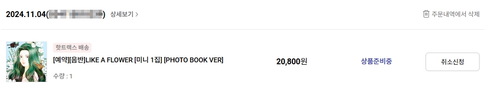 SM이 발표한 올해 라인업 중 아이린 솔로를 발견했을 때 기뻤고, 손꼽아 기다렸는데 이제 진짜 조금만 기다리면 되네요. SNS 계정 댓글로 주접도 좀 떤 다음 앨범 예약 구매 완료! 한정반 미러 버전도 탐나긴 하지만 포토북 버전으로 통일할 생각이라서 이걸로 ~.~
