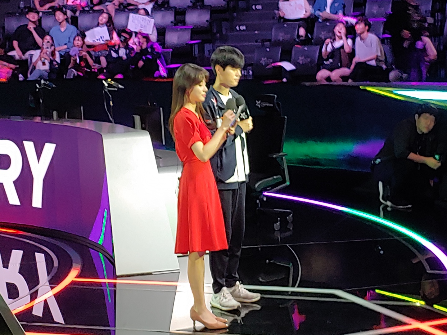 이 사진은 데프트 선수보다는 갓민아 아나운서를 가까이에 담고 싶어서 찍었을 뿐. 김민아 아나운서에 집중했지만 데프트 선수의 비율이 진짜 좋다고 생각한 순간이기도 합니다.
