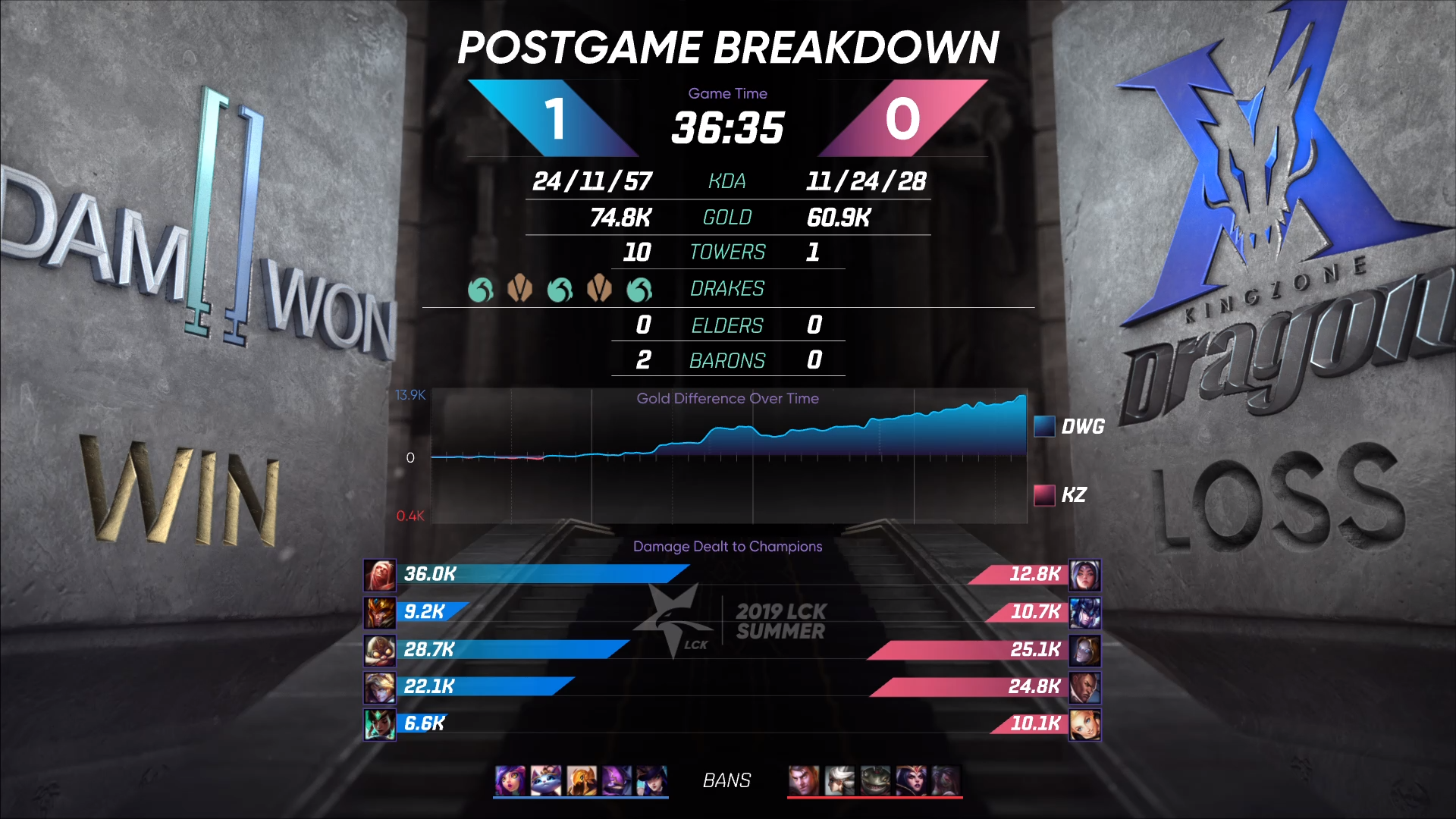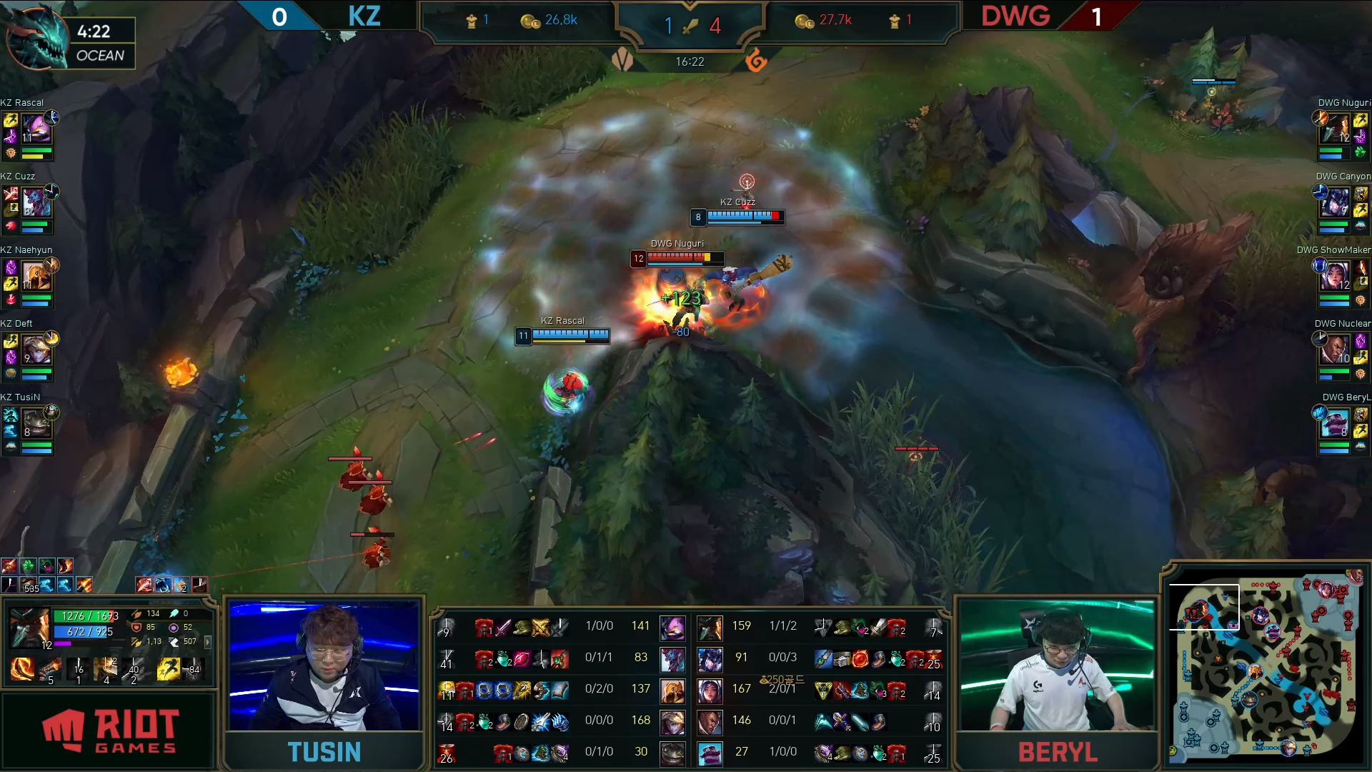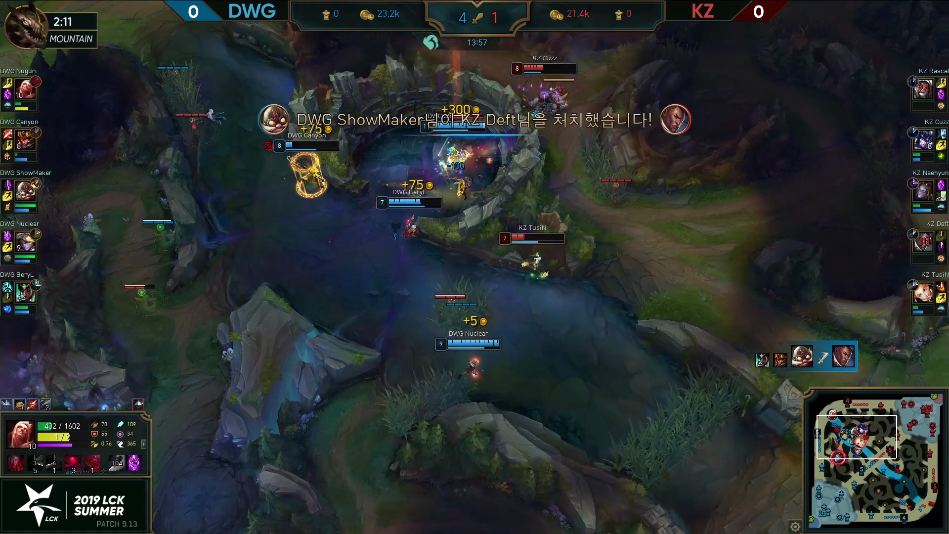 그렇지만 그 옛날 앰비션 선수가 퍼블션으로 불리면서 퍼블의 상징으로 떠올랐던 것처럼 너구리 선수가 실수로 퍼블 또는 킬을 내주는 것 역시 상수라는 듯 금방 한타에서 만회해버린 담원이었습니다. 엄청나게 격차를 벌린 후 조금은 안일한 플레이로 시간을 끌려버린 담원이었으나 그래도 무난하게 압살한 1경기였네요.