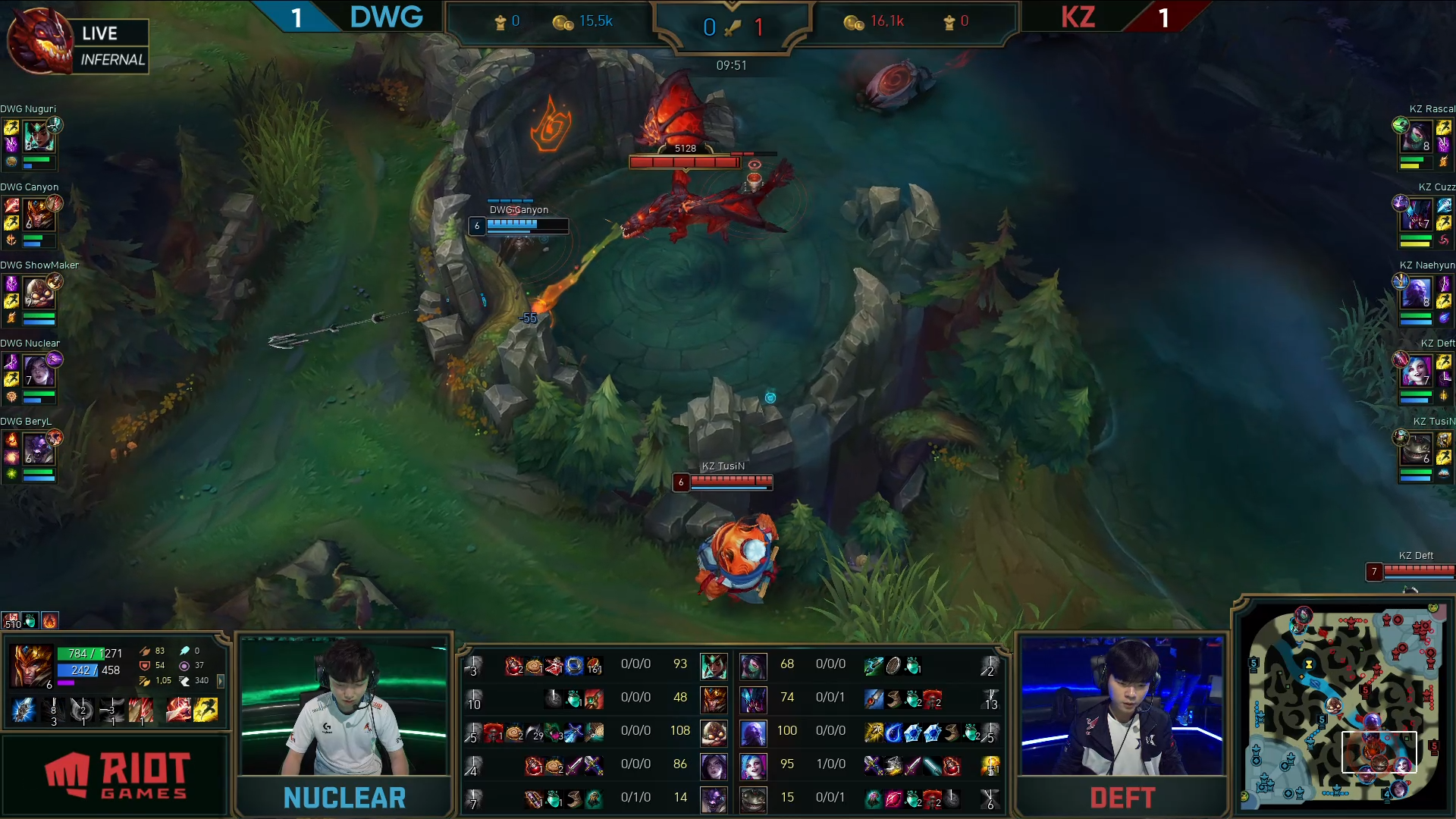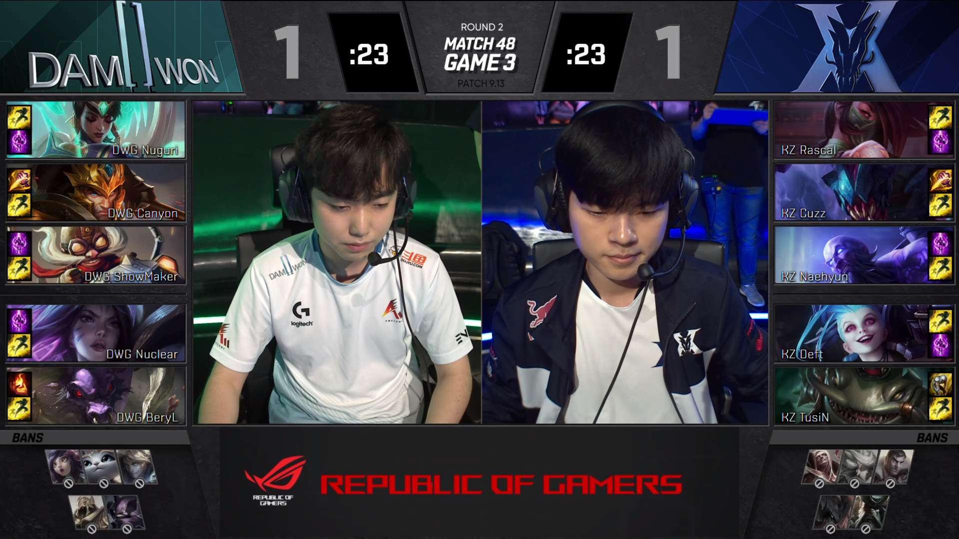 곧바로 열린 다음 한타에서 대패 후 바로 경기를 내준 담원이었습니다. 쇼메이커 선수가 마지막에 분발했지만 역부족이었고 내현 선수의 아지르가 한타에서 활약하는 모습이 인상적이었습니다. 데프트 선수는 딜링머신답게 그냥 하루 종일 딜을 꽂아넣었기 때문에 당연히 잘했고요.
