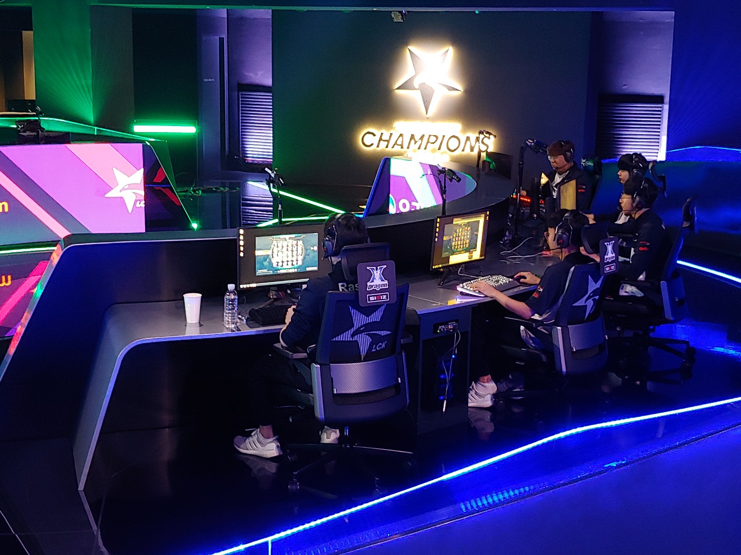 그리고 또 한 쪽에서는 킹존 드래곤 X 선수들이 열심히 손을 풀고 있었습니다. 하지만 이 날은 담원을 응원하고 있었기 때문에 적팀!