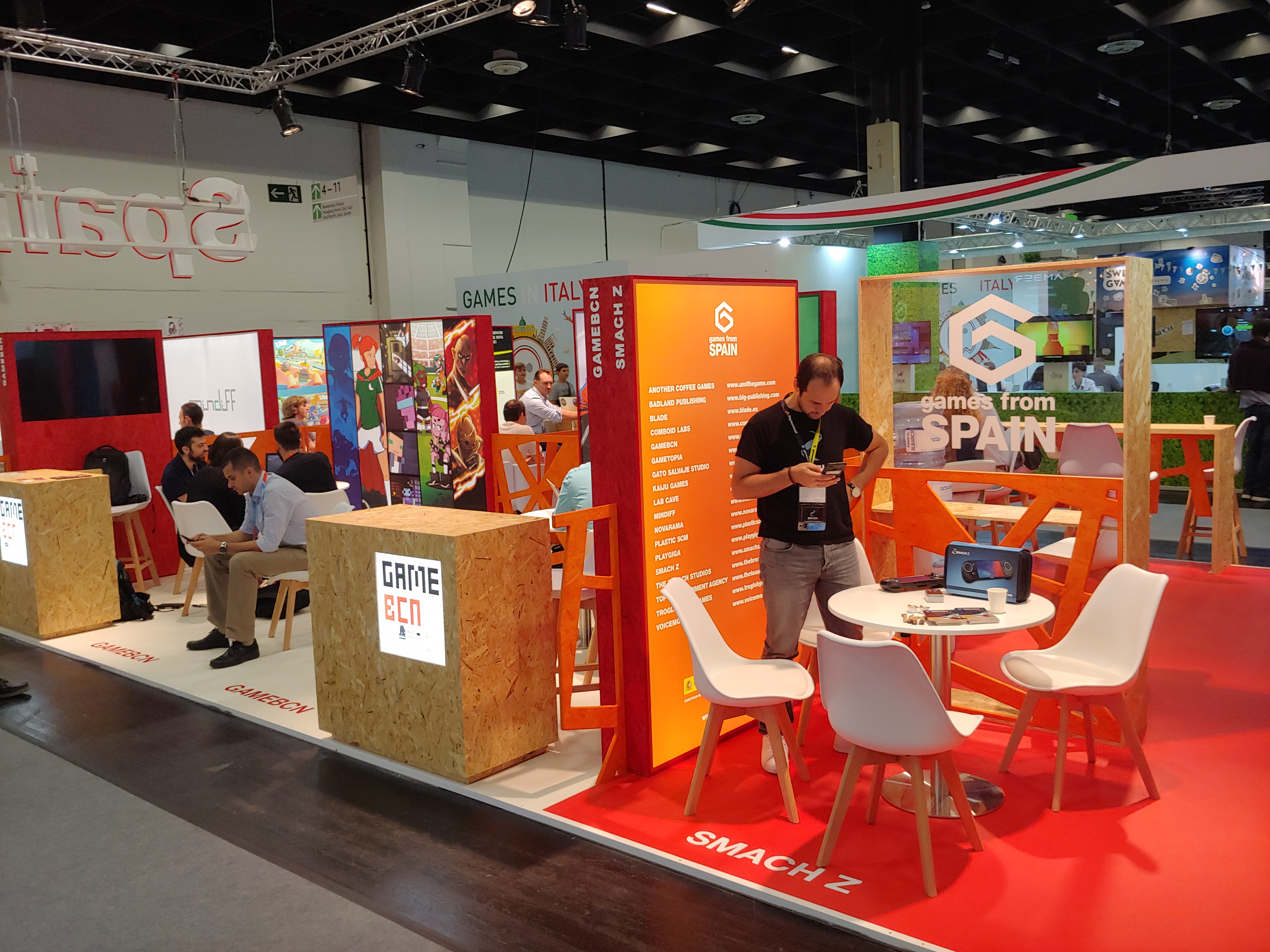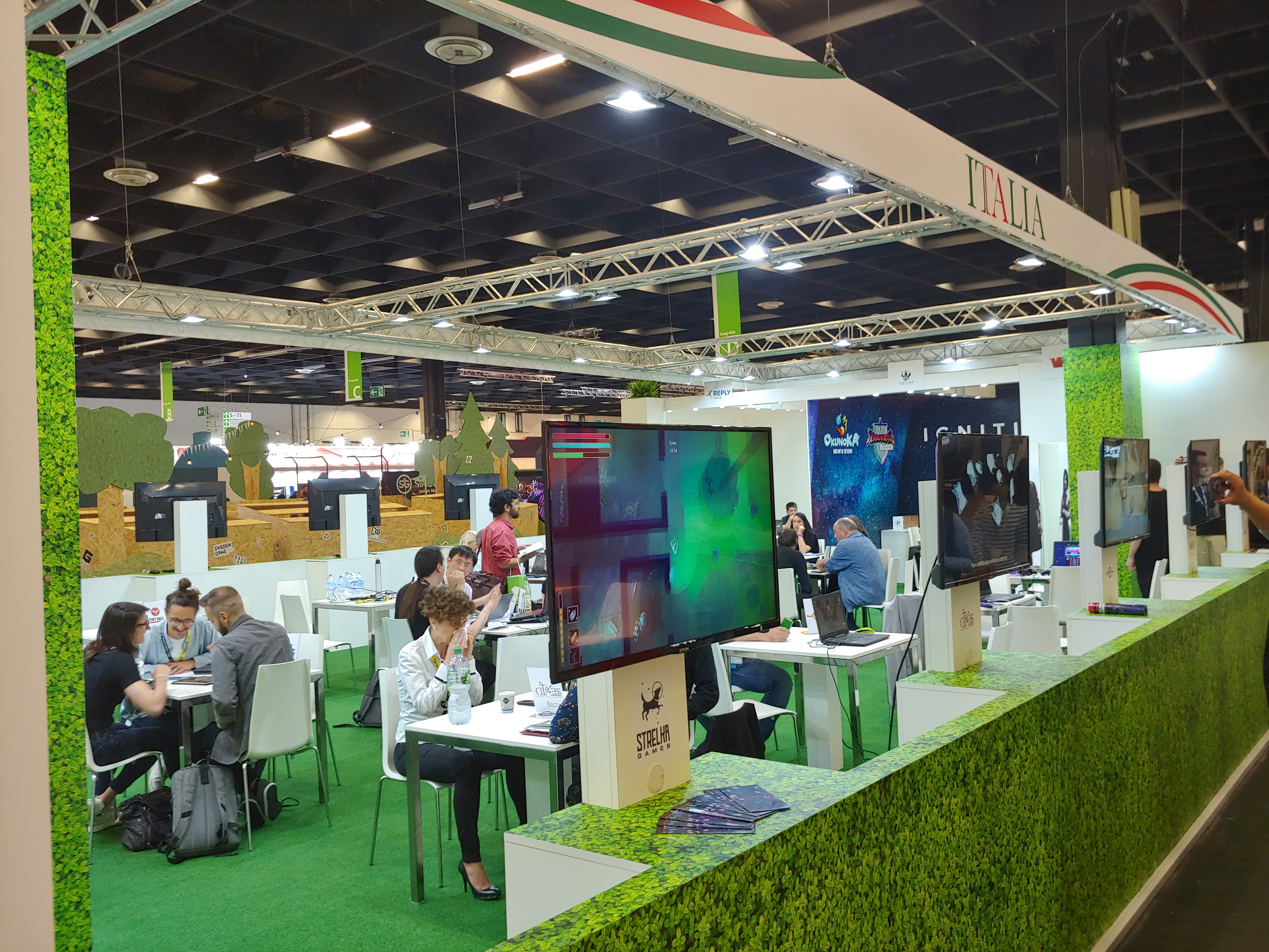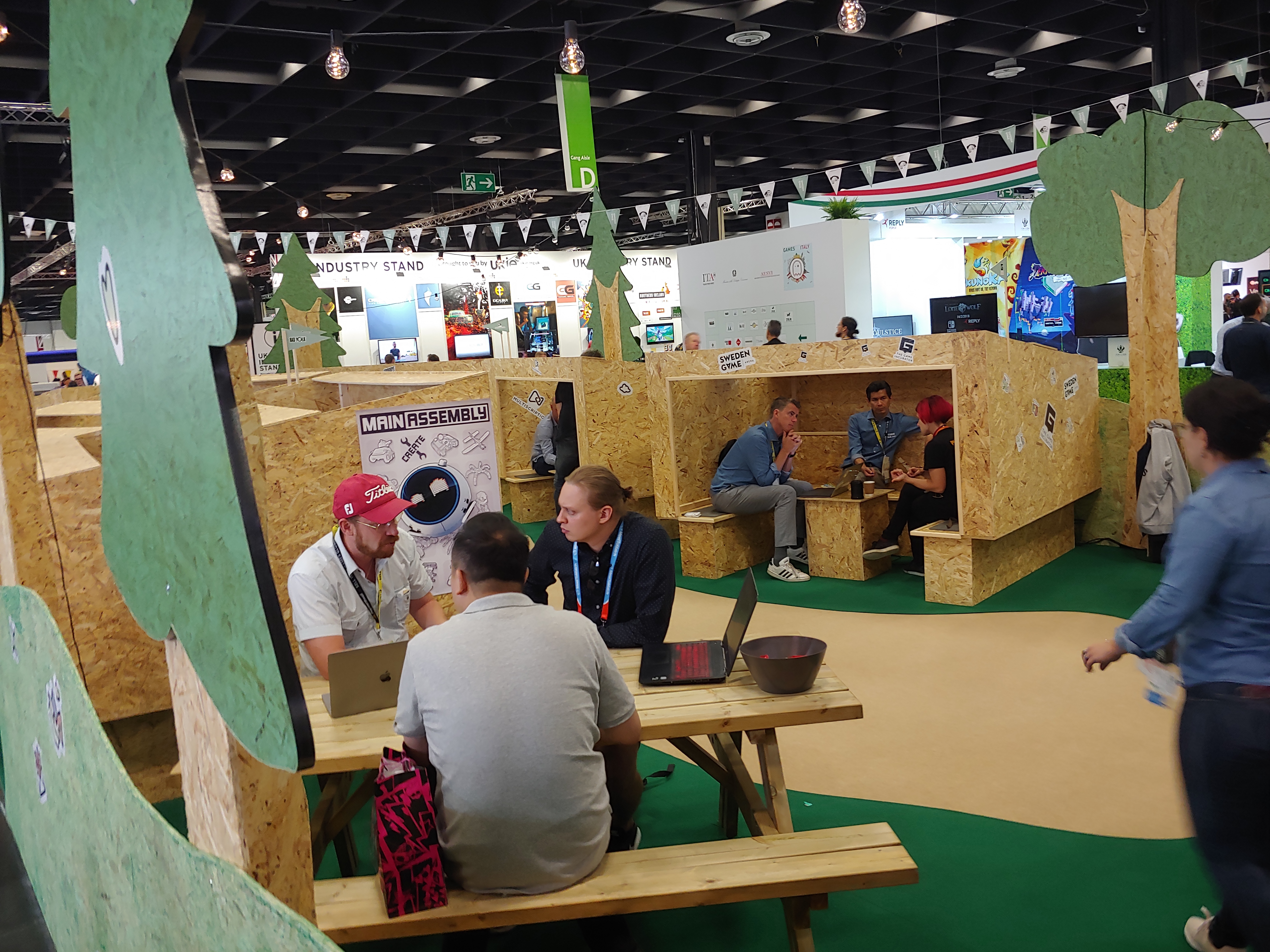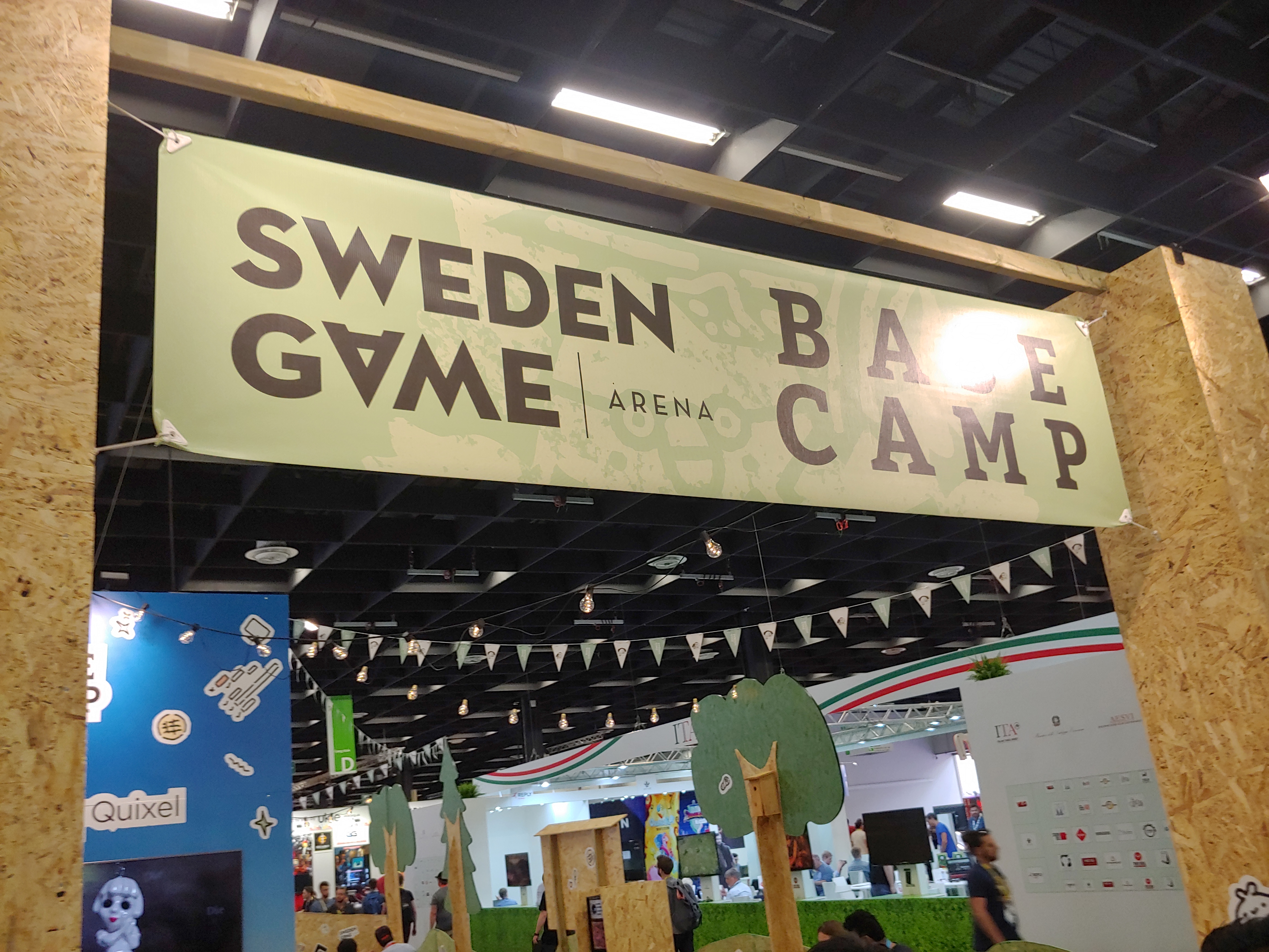 게임스컴 2019에는 여러 국가의 B2B 공동관이 있었는데 인상적이었던 스웨덴 부스(Sweden)입니다. 키가 많이 큰 사람들한텐 불편할 수도 있지만 ^^; 자연이 아닌데 자연을 즐기는 것 같은 그런 느낌과 지붕을 표현한 미팅 공간이 재밌었어요.