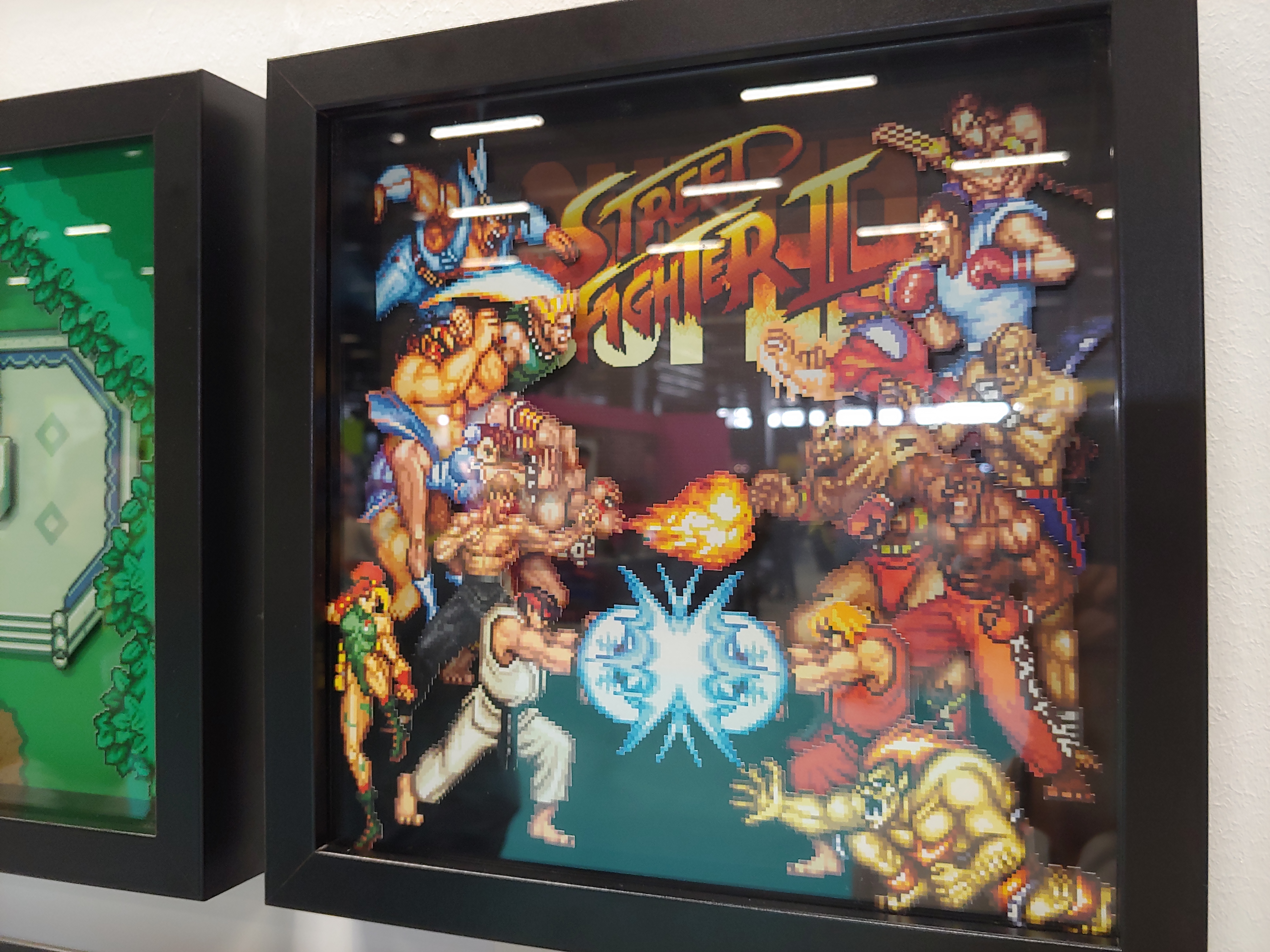 정말 다양한 고전게임 타이틀이 이렇게 액자형식으로 전시된 벽도 있었습니다. 슈퍼마리오(Super Mario)가 너무 귀여웠고, 스트리트 파이터 2(Street Fighter 2)가 반가워서 찍어봤어요.