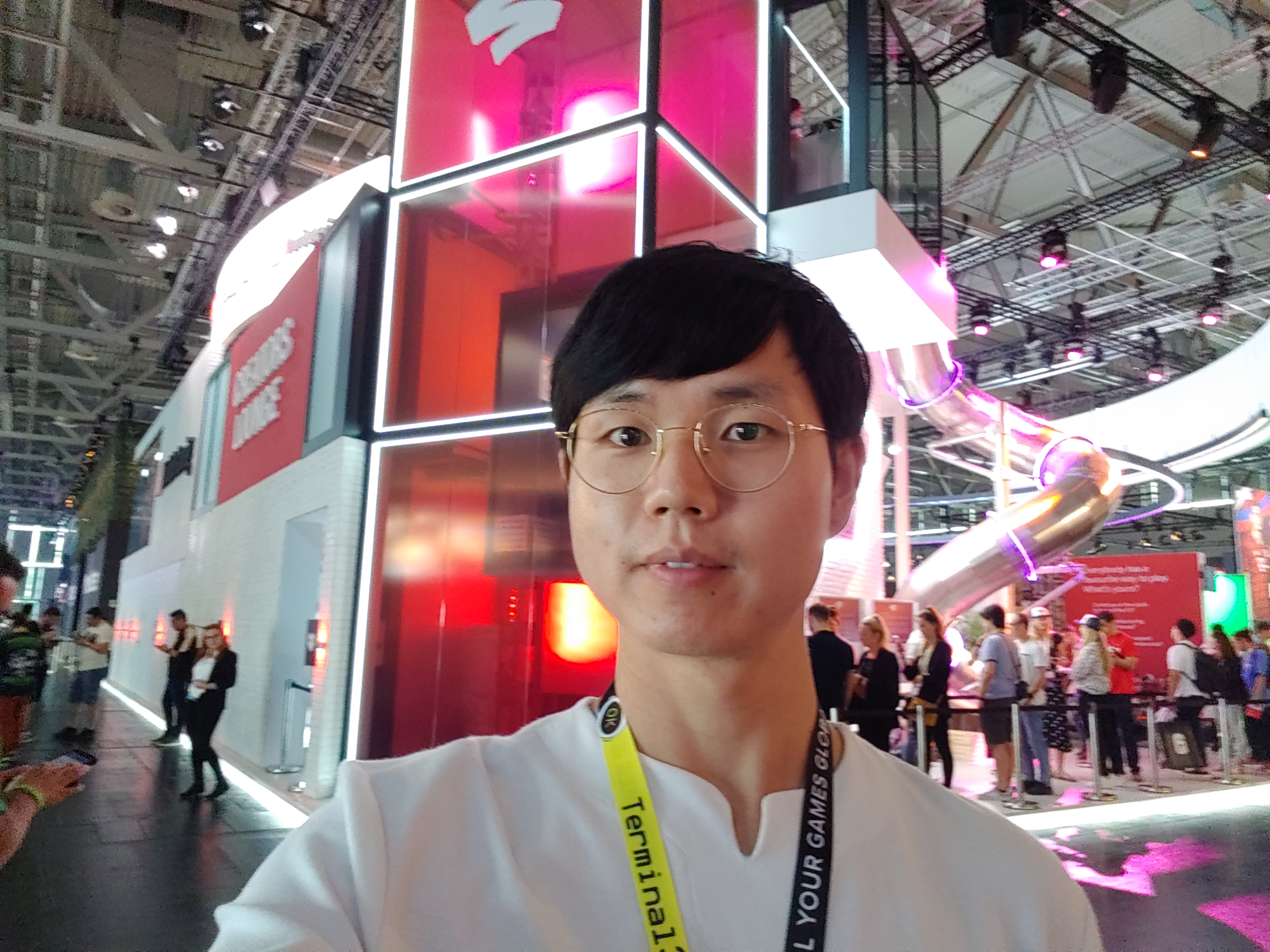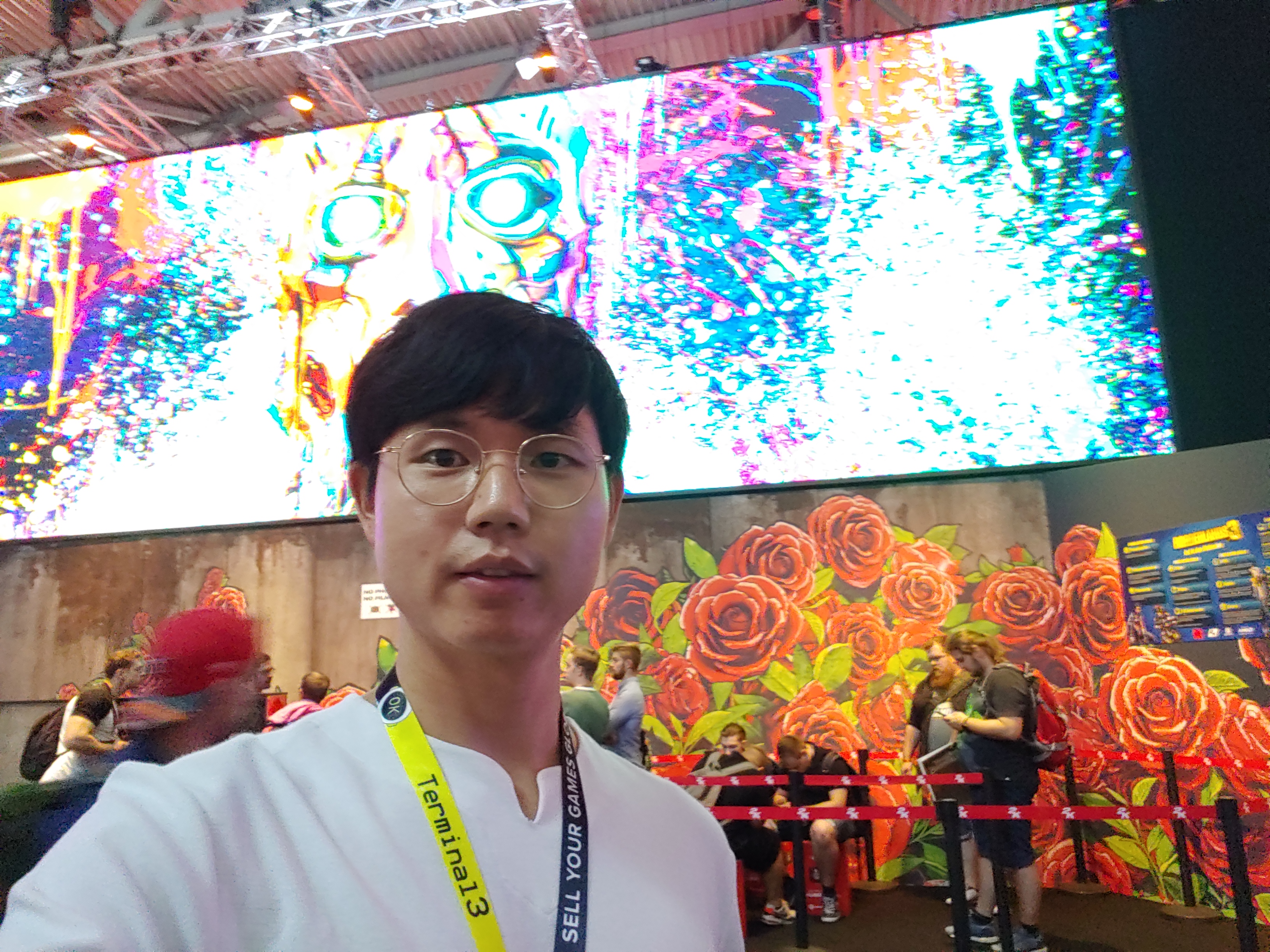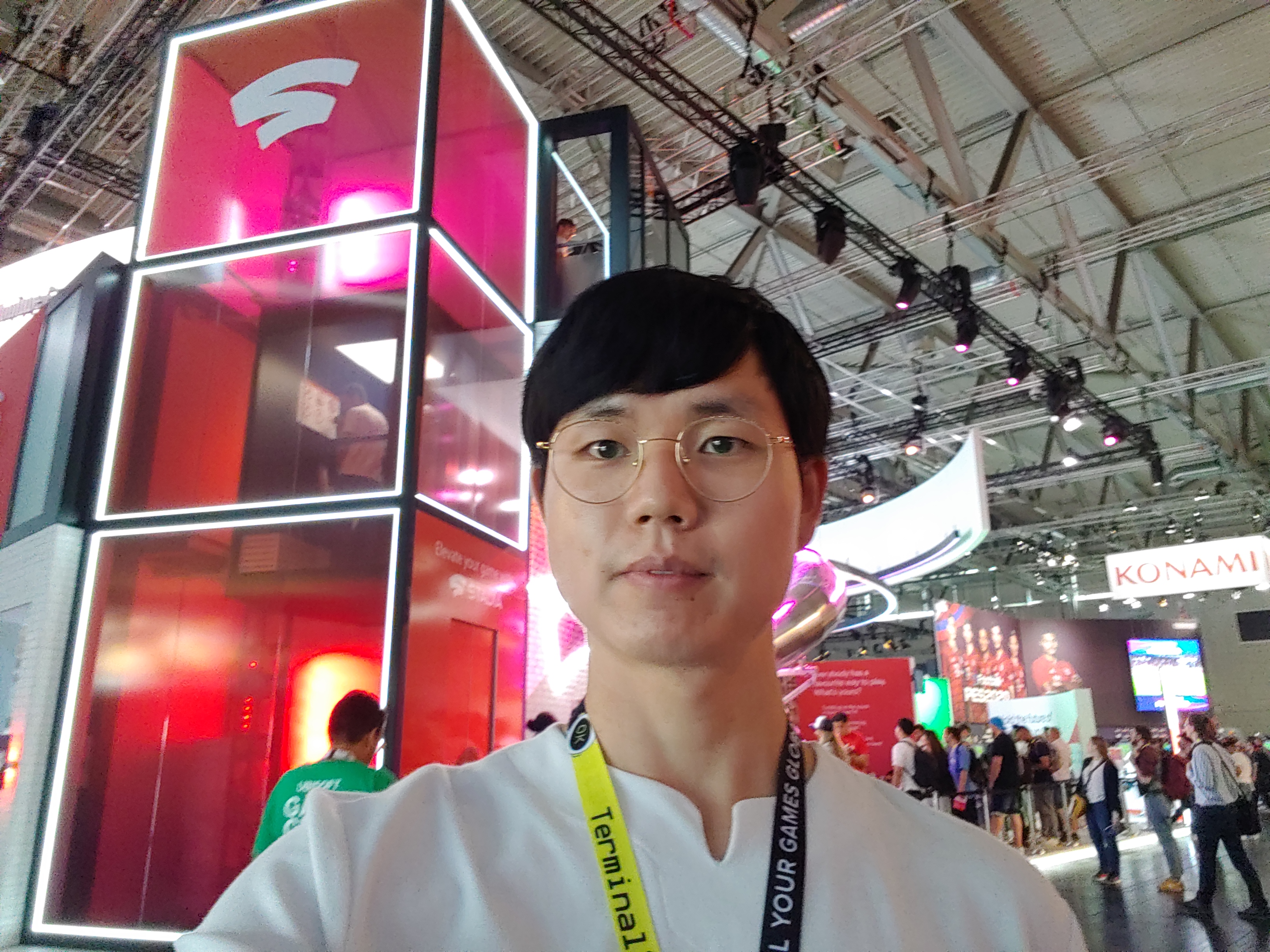 멀리 독일 쾰른까지 와서 게임스컴에 참가했다는 인증사진이 빠지면 섭하죠. 돌아다니다가 중간점검 셀카 한 번 찍었습니다.