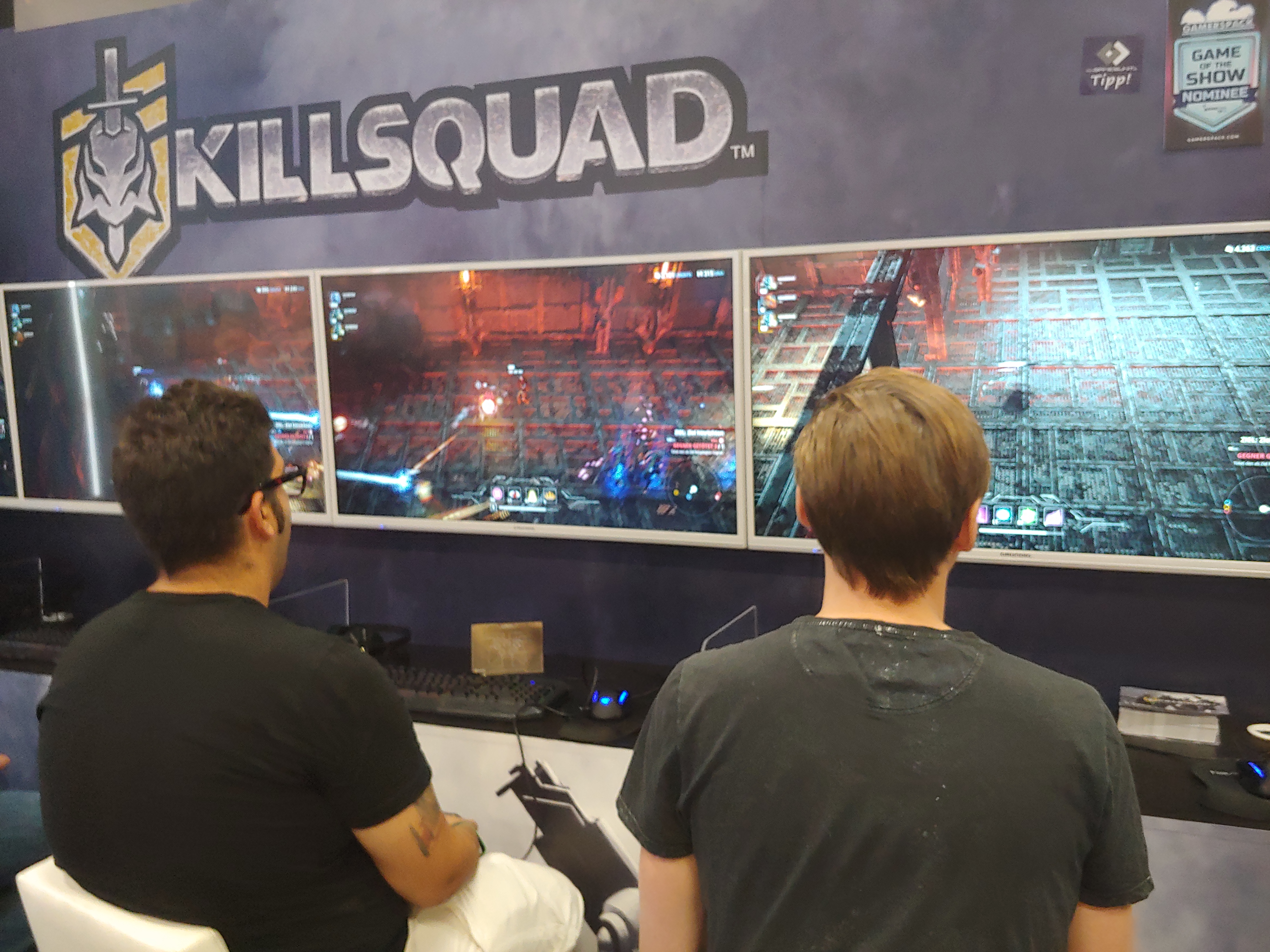킬스쿼드(Killsquad)라는 게임은 4명이 함께 던전 플레이를 즐길 수 있는 게임이었는데 구경하다 보니까 관계자분이 '한번 해보쉴?'하고 권하더라고요. 저도 모르게 알겠다고 하고 괜히 붙잡혔다 ㅠㅠ 잠깐 후회했는데 너무 기분 좋은 경험을 했습니다.