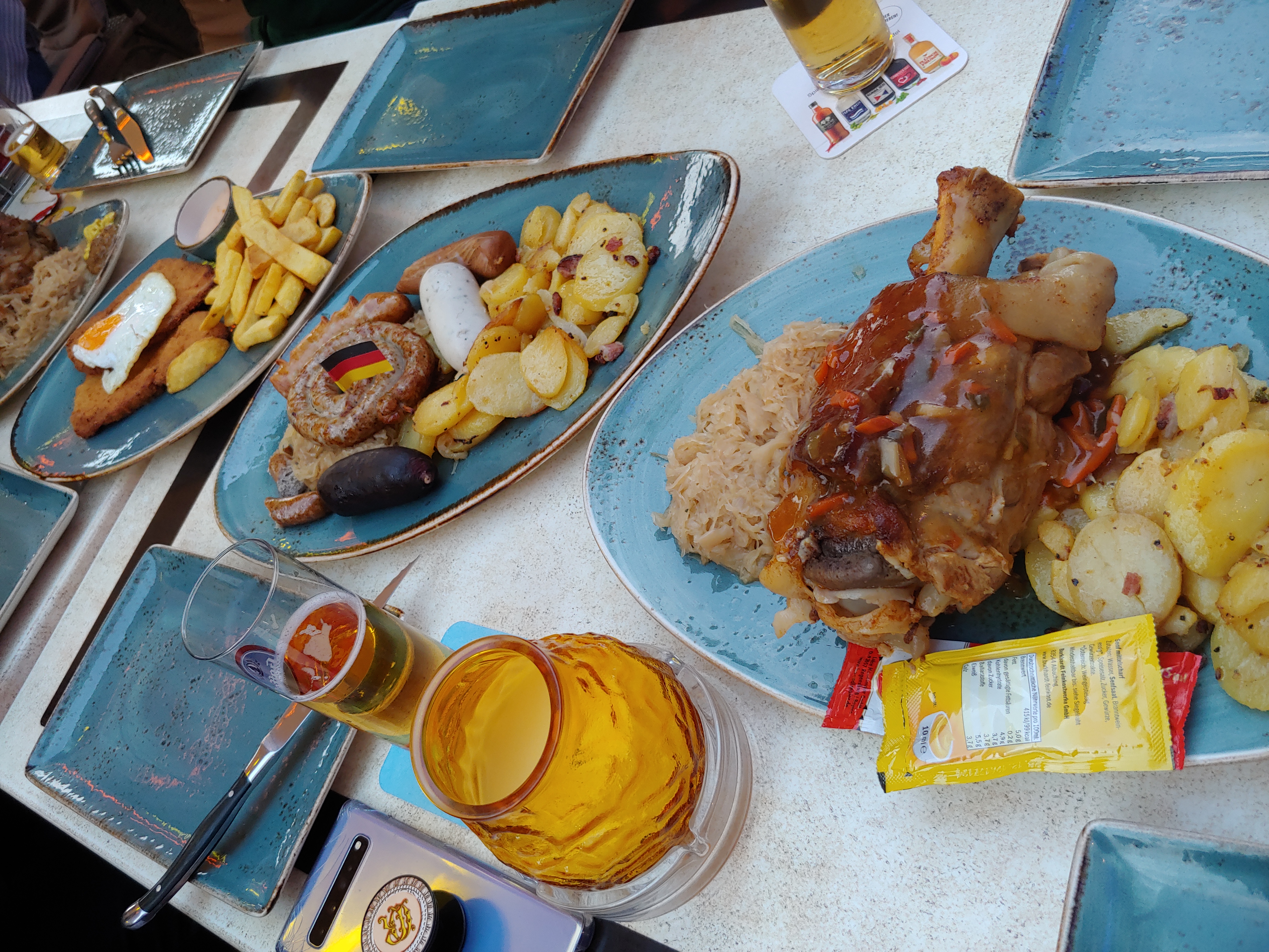 거의 4시간 동안 쉬지 않고 돌아다니면서 부스 사진을 찍었는데도 미처 다 못 찍은 부스가 있을 정도로 엄청난 규모의 게임스컴 1일차 전시가 끝난 후에는 저녁을 먹으러 갔습니다. 호엔촐레른 다리가 있는 강변을 따라 쫙 깔린 술집 중 하나였는데 여기에서 먹은 쾰시(Kolsch), 학센(Schweinshaxe), 소시지(Sausage), 슈니첼(Schnitzel) 모두 최고였어요. 특히 학센은 제가 혼자 먹었던 튀김 스타일과 다른 물렁물렁 살이었는데 기가 막히더라고요. 굳굳!