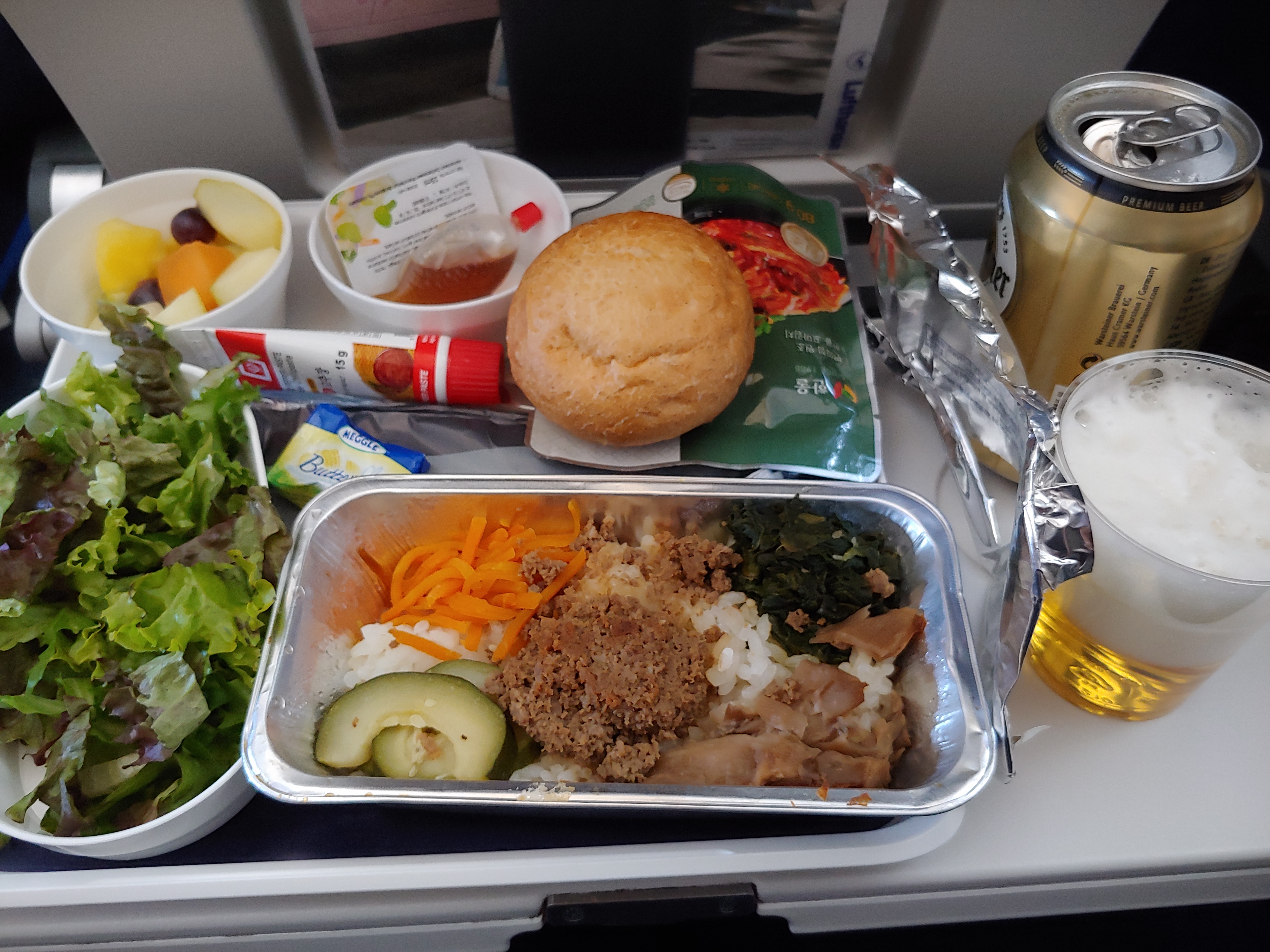돌아오는 길에 이용한 항공도 루프트한자(Lufthansa)였는데 기내식은 이러했습니다. 비빔밥 말고 딴거 먹으려고 기다리다 다 떨어졌다고 강제 비빔밥을 먹은 순간도 있었지만 나름 만족스러운 기내식이었네요.