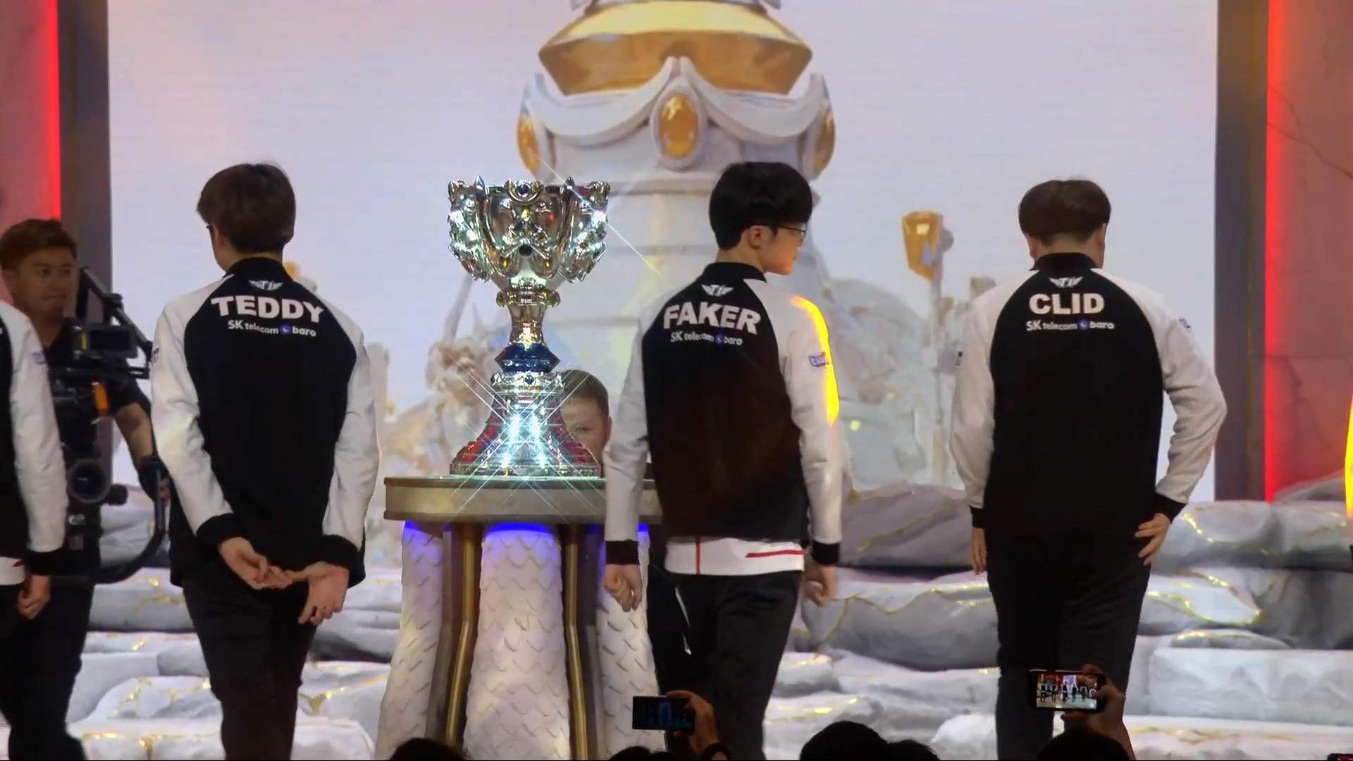 3경기 전부 깔끔한 경기력으로 승리를 차지하면서 G2와 함께 가장 강력한 우승후보로 모든 사람들이 지목하고 있는 SKT T1 선수들은 뒷모습조차 빛났습니다. 경기장 중앙에서 반짝반짝 빛나고 있는 소환사의 컵과 누구보다 잘 어울리는 그들, 그리고 페이커 선수라는 생각이 들었어요. 딱 이 장면에서 페이커 선수의 뒷모습이 어찌나 멋있던지.