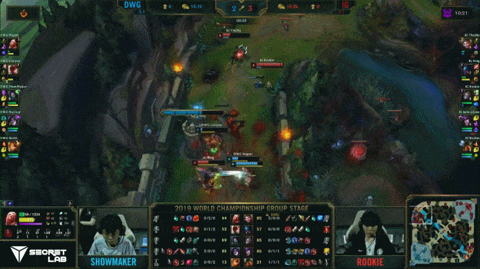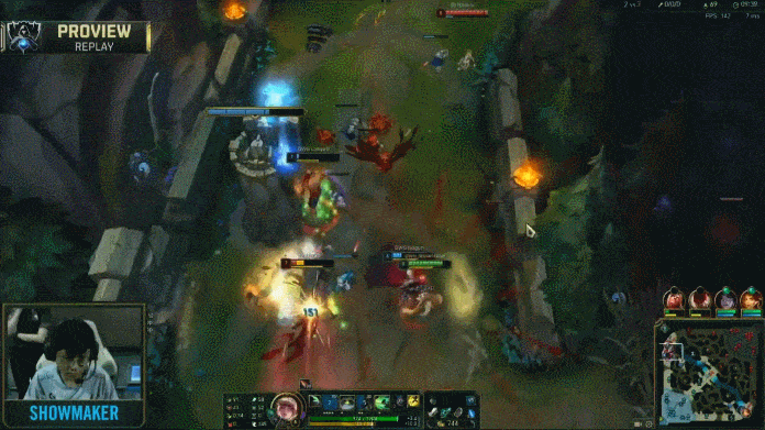 예상대로 IG의 초반 라인전은 어마무시했습니다. 특히 너구리 선수는 초반에 말리면서 뼈도 못 추리고 있었는데 이 때 등장한 해결사 쇼메이커(Showmaker) 선수였습니다. 담원이 탑에서 밀리고 있을 때 등장하더니 3킬을 쓸어먹는 모습이 캬~지금 봐도 예술이고 말그대로 아칼리쇼였습니다.