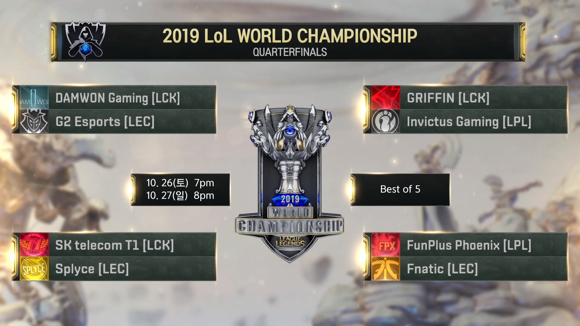 LCK의 자랑스러운 SKT T1과 그리핀 '선수들'이 각각 그룹 스테이지에서 5승 1패라는 우수한 성적으로 8강에 진출해 있던 지난 밤, 드디어 담원 게이밍이 나설 차례가 되었습니다. 그리고 담원은 LCK팬들의 바람대로 3연승을 기록했고 결국 다른 LCK팀들과 같이 5승 1패, 1시드로 그룹 스테이지 D조를 탈출했고 현재 최강 리그는 LCK라는 점을 증명 중입니다.