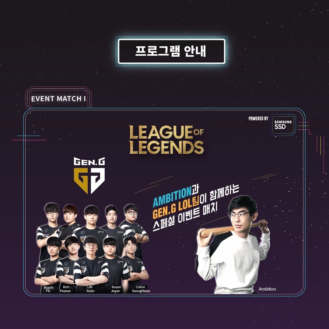 저를 젠지(구 삼성 갤럭시)빠로 만드는데 일등공신 역할을 한 앰비션(Ambition)도 현장을 찾는다고 하니까 젠지콘 못 가는게 더 억울해요. 어쨌든 젠지 리그오브레전드팀 멤버들과 (현)스트리머 강찬밥은 어떤 케미를 보여주면서 팬들에게 즐거움을 줄까요?