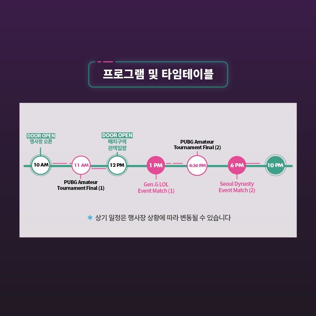 이번 젠지콘에서는 펍지 아마추어 토너먼트부터 다양한 이벤트들이 진행된다고 하는데 얼마나 분위기가 좋을지 궁금해요. 그렇지만 이번 젠지콘의 메인은 뭐니뭐니 해도 젠지 리그오브레전드팀과 서울 다이너스티 선수들을 한 자리에서 볼 수 있다는거 아니겠어요?